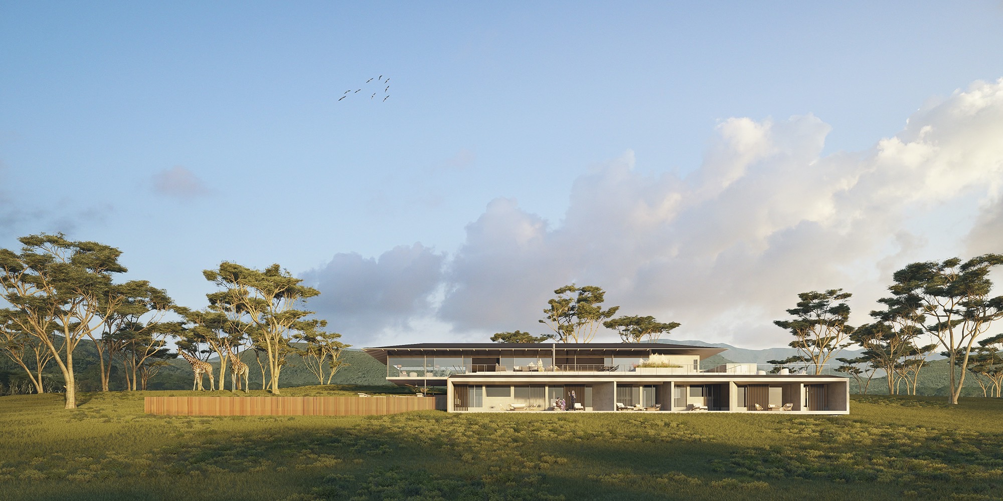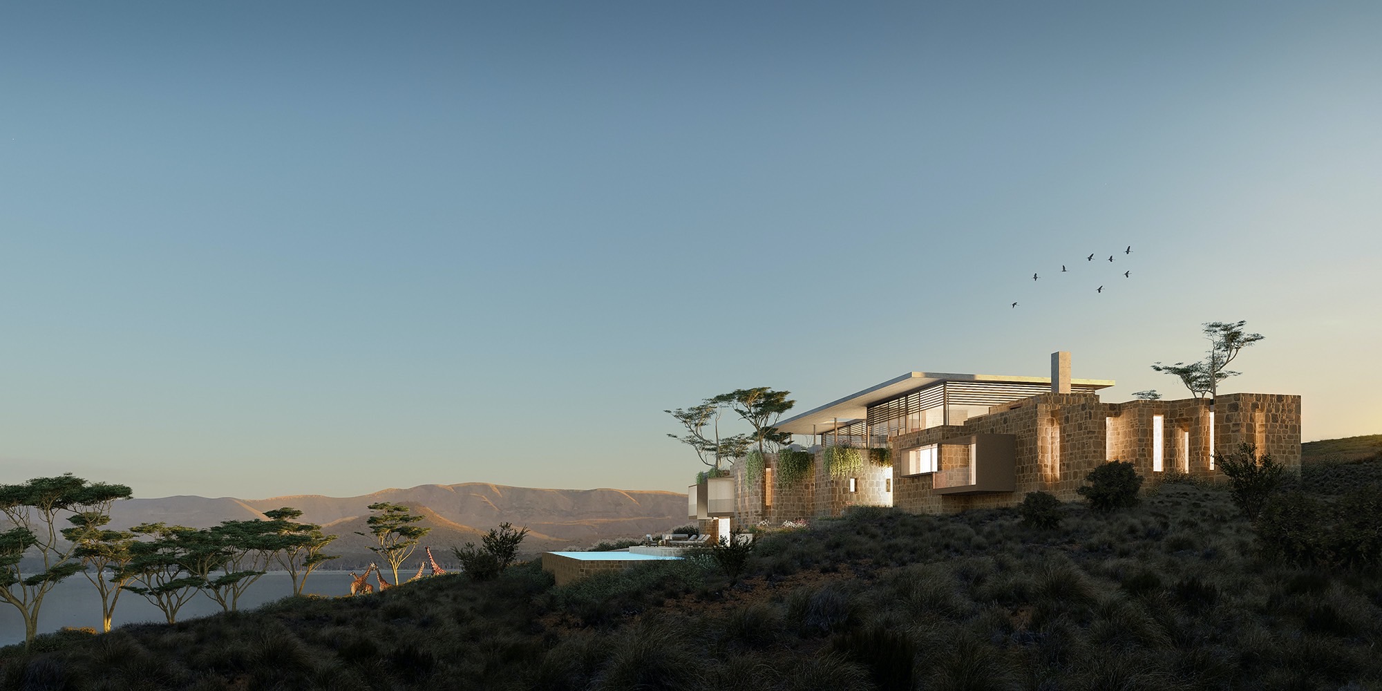 A masterplan in Naivasha respectful with the animal corridors and its surrounding nature. Respecting the game flow was key for the design: Hippos night crossings, bird nestings, animal corridors, day and night refuges close to humans to avoid predators ,salt lick points, water spots.