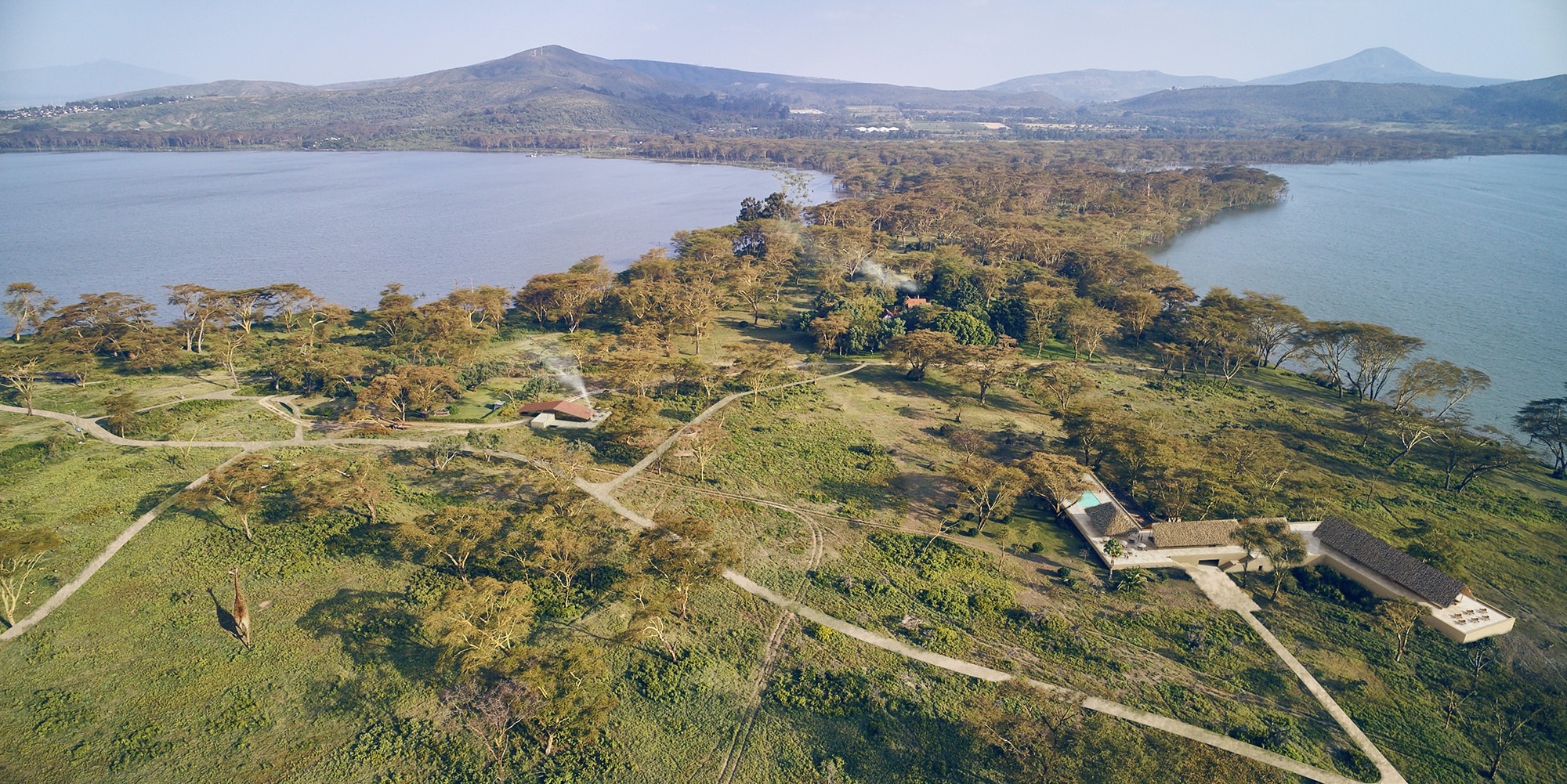 An Eco-luxurious community in between lakes, on the istmo between Laka Naivasha and Lake Oloiden.