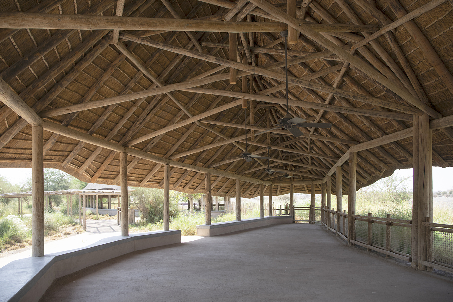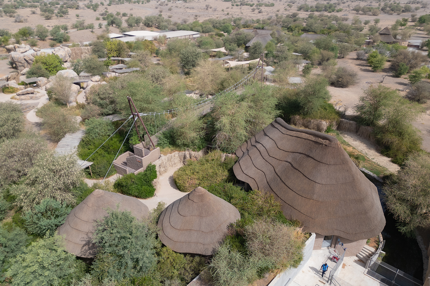 Located within the Al Bridi Reserve in Sharjah, the project was conceived as an environment dedicated to research, education, and the study of African ecosystems. Our role centred on designing the ensemble of public and service buildings that structure the visitor experience: entrance pavilions, ticketing areas, retail spaces, educational camp, and ancillary facilities.